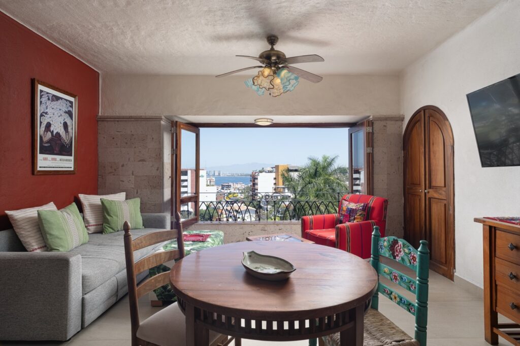 Private Hideaway Promising Solitude and Spectacular Ocean Views: Casita Cascada—one of Marcela’s most popular hideaways overlooking the city and ocean below—offers travelers a spacious queen bedroom with a private patio to relax in solitude during a refreshing Puerto Vallarta escape. The terracotta tile floors in the kitchen, dining, and living rooms will be cool on